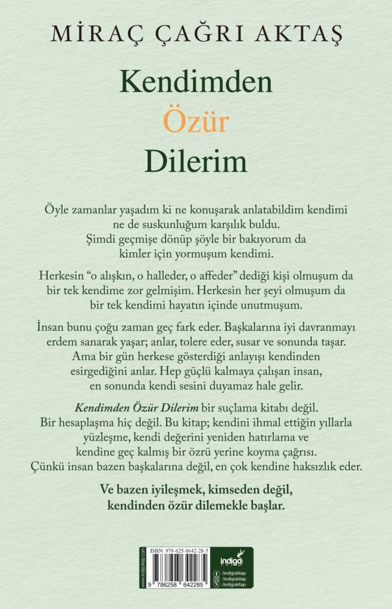 Bir hesaplaşma hiç değil. Bu kitap; kendini ihmal ettiğin yıllarla yüzleşme, kendi değerini yeniden hatırlama ve kendine geç kalmış bir özrü yerine koyma çağrısı.
